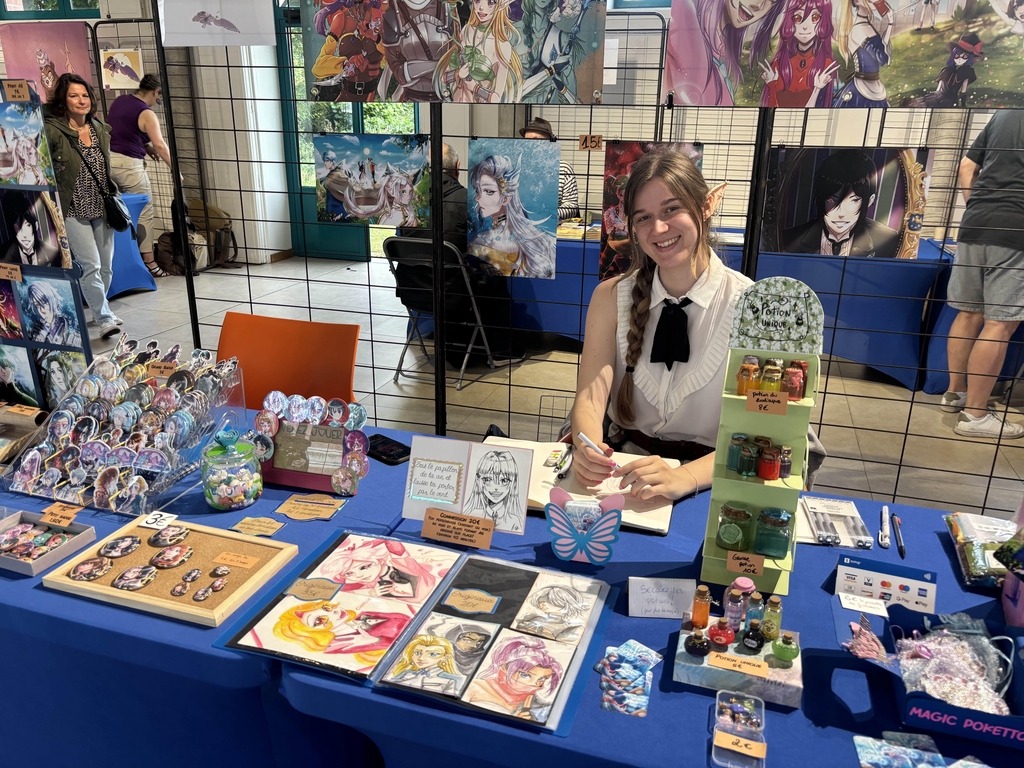 Je donne des cours de manga dans des médiathèques et fais des prestations de service pour réaliser des vitrines saisonnières (Noël...).